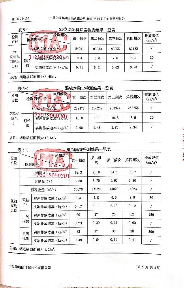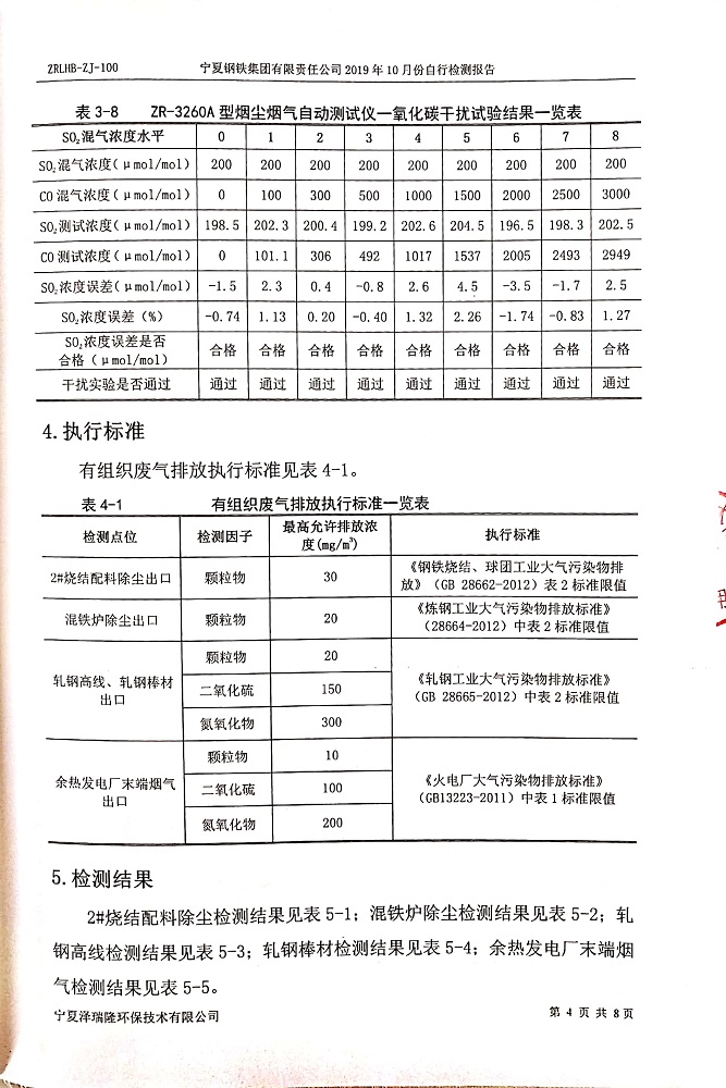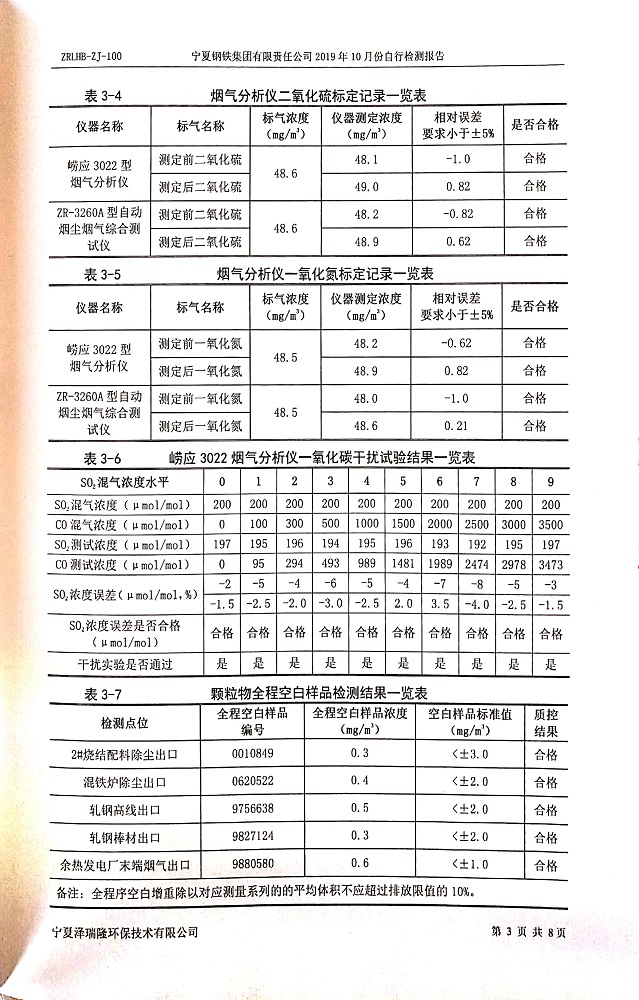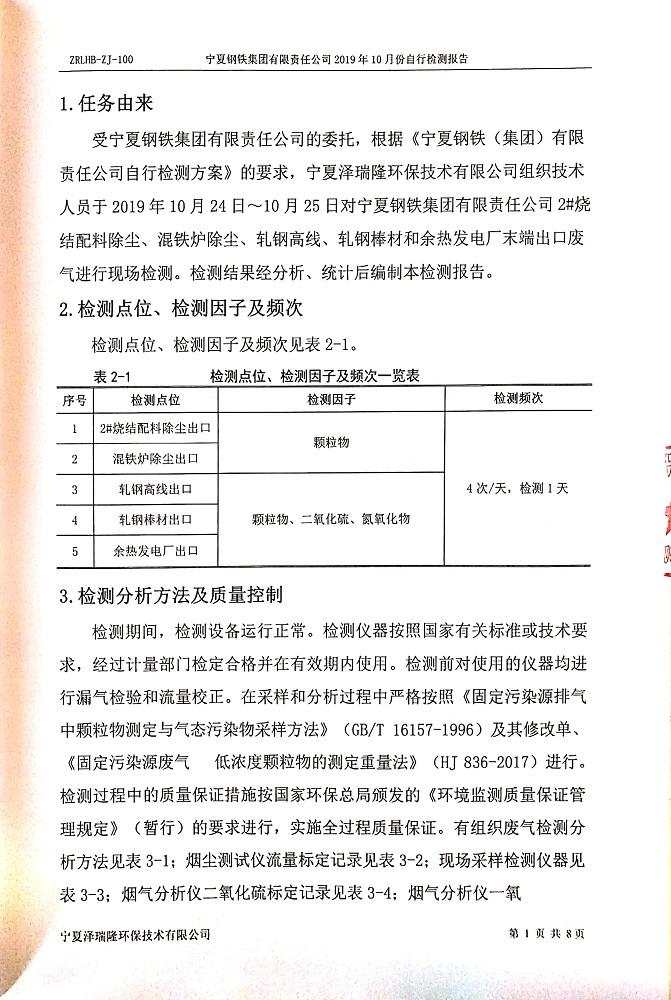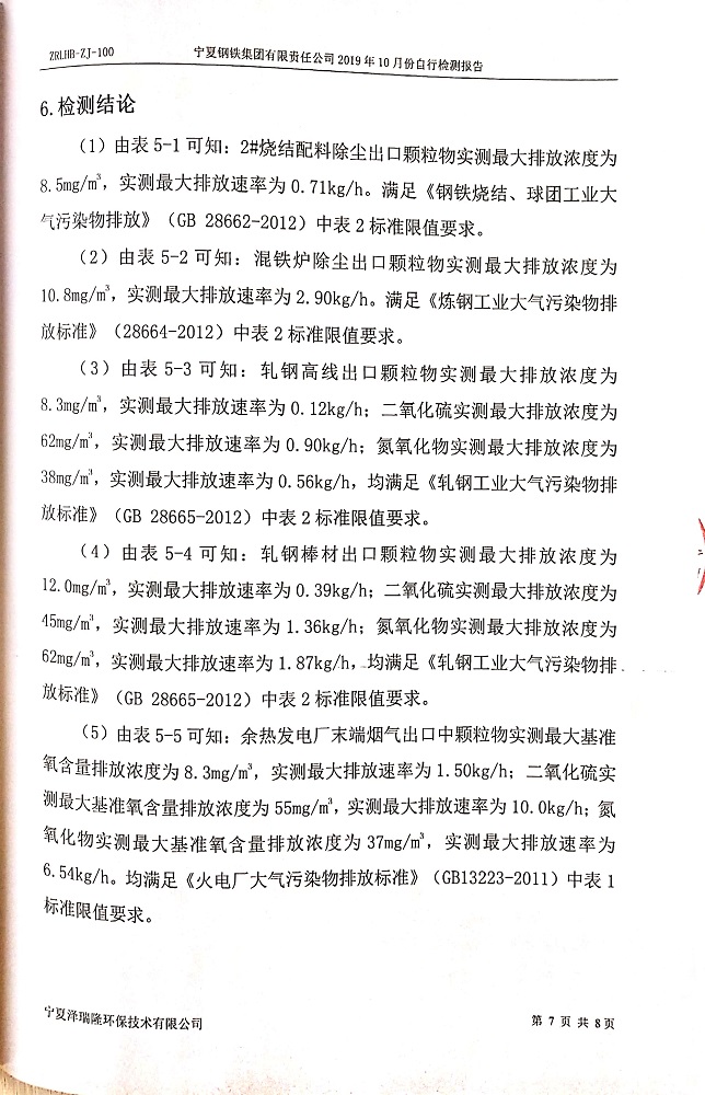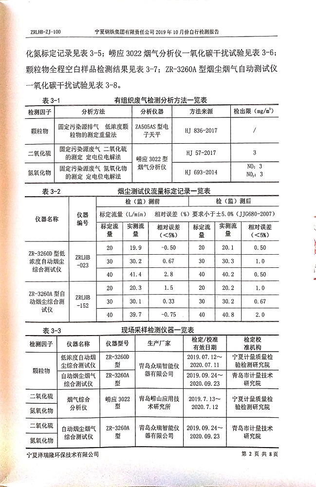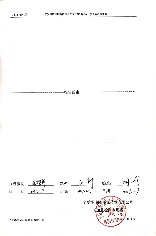 寧鋼2019年10月份自行檢測報告