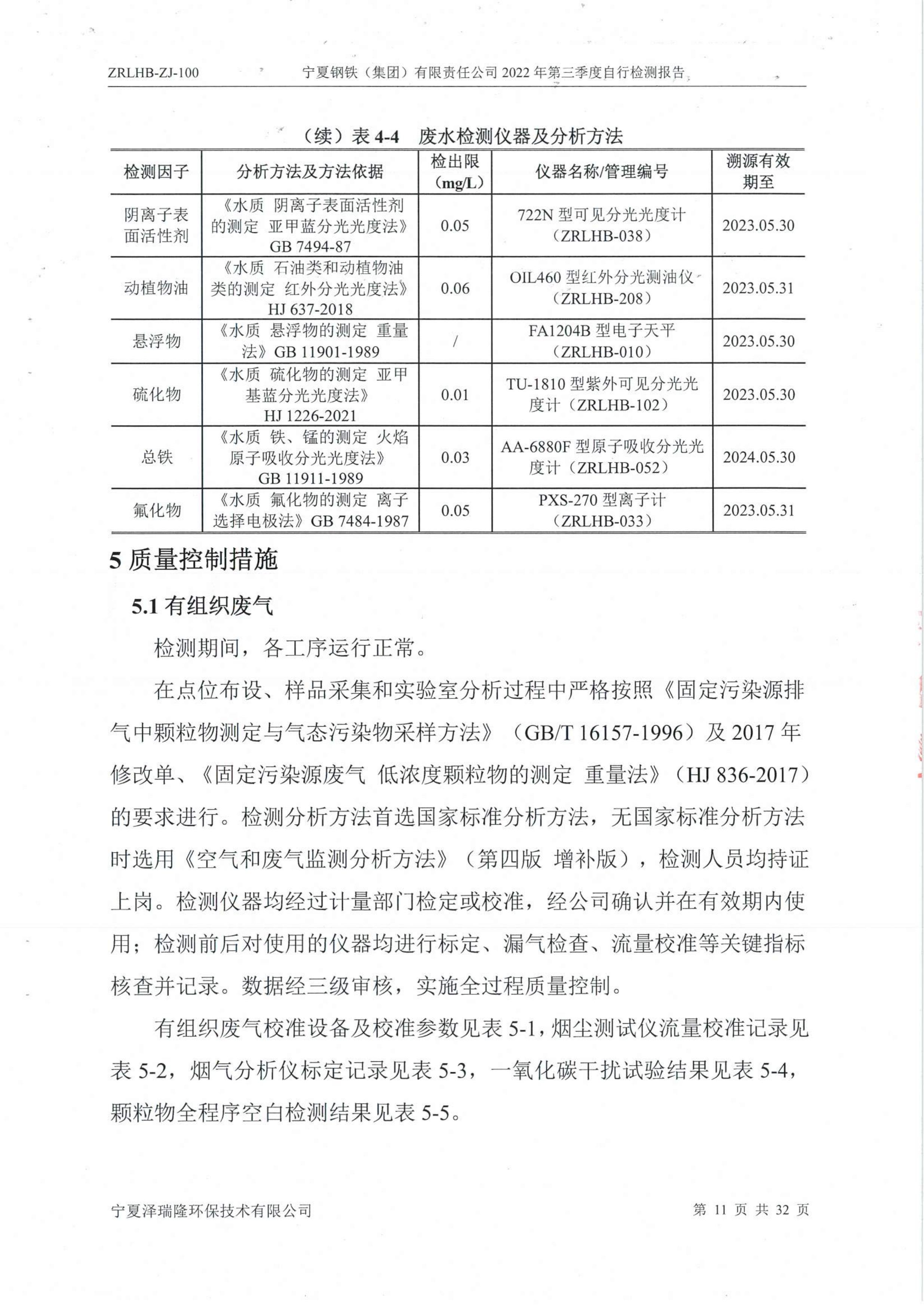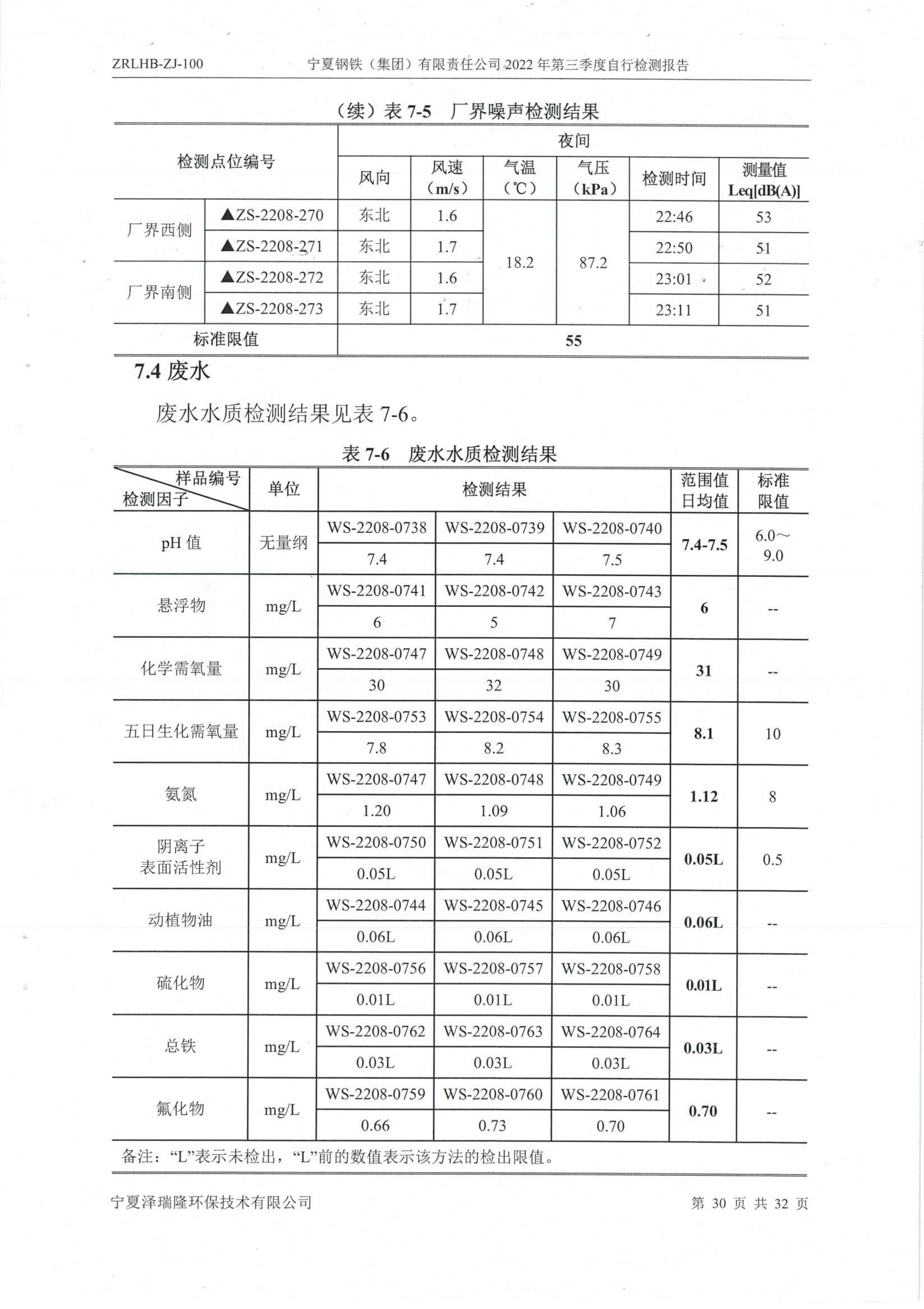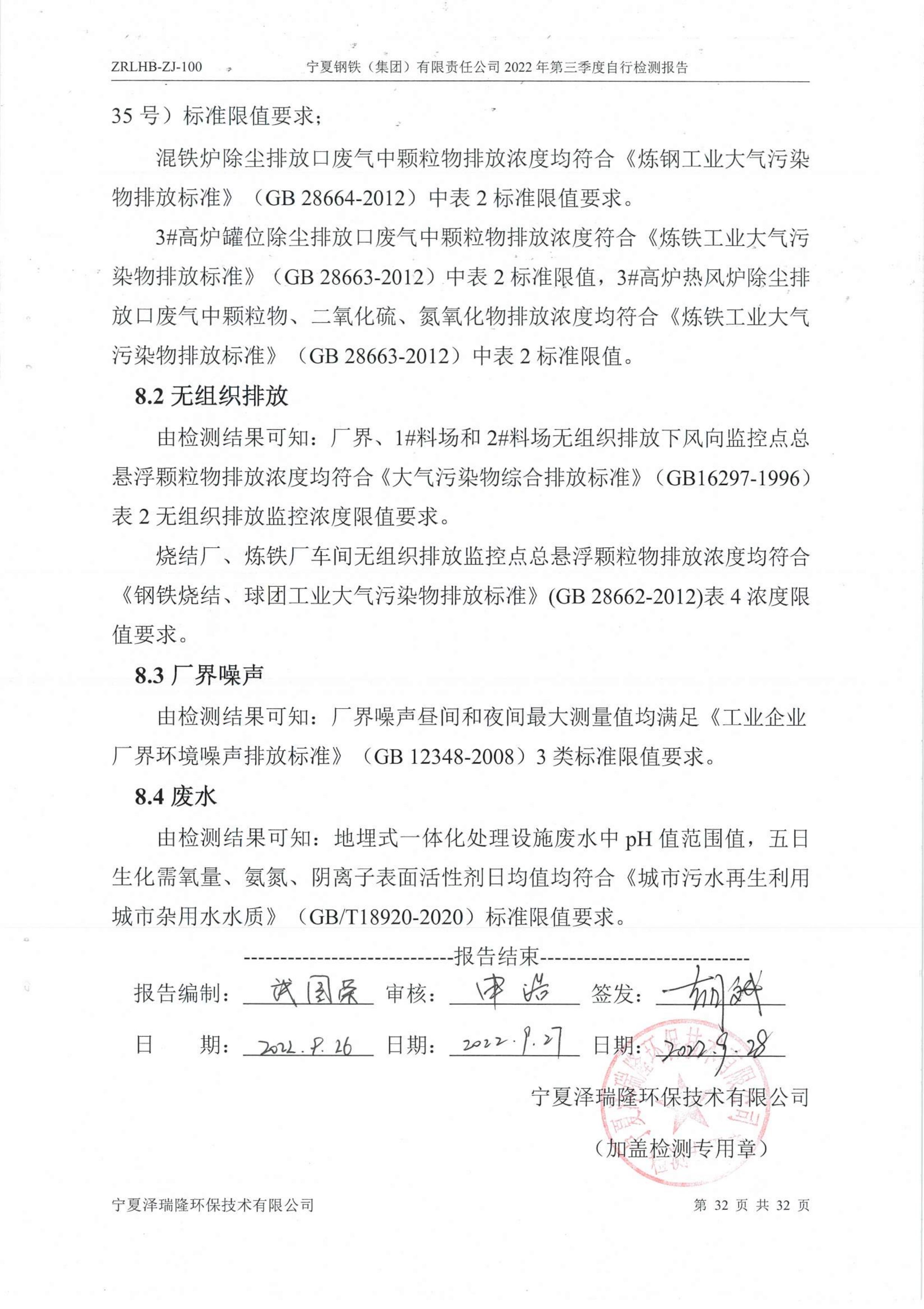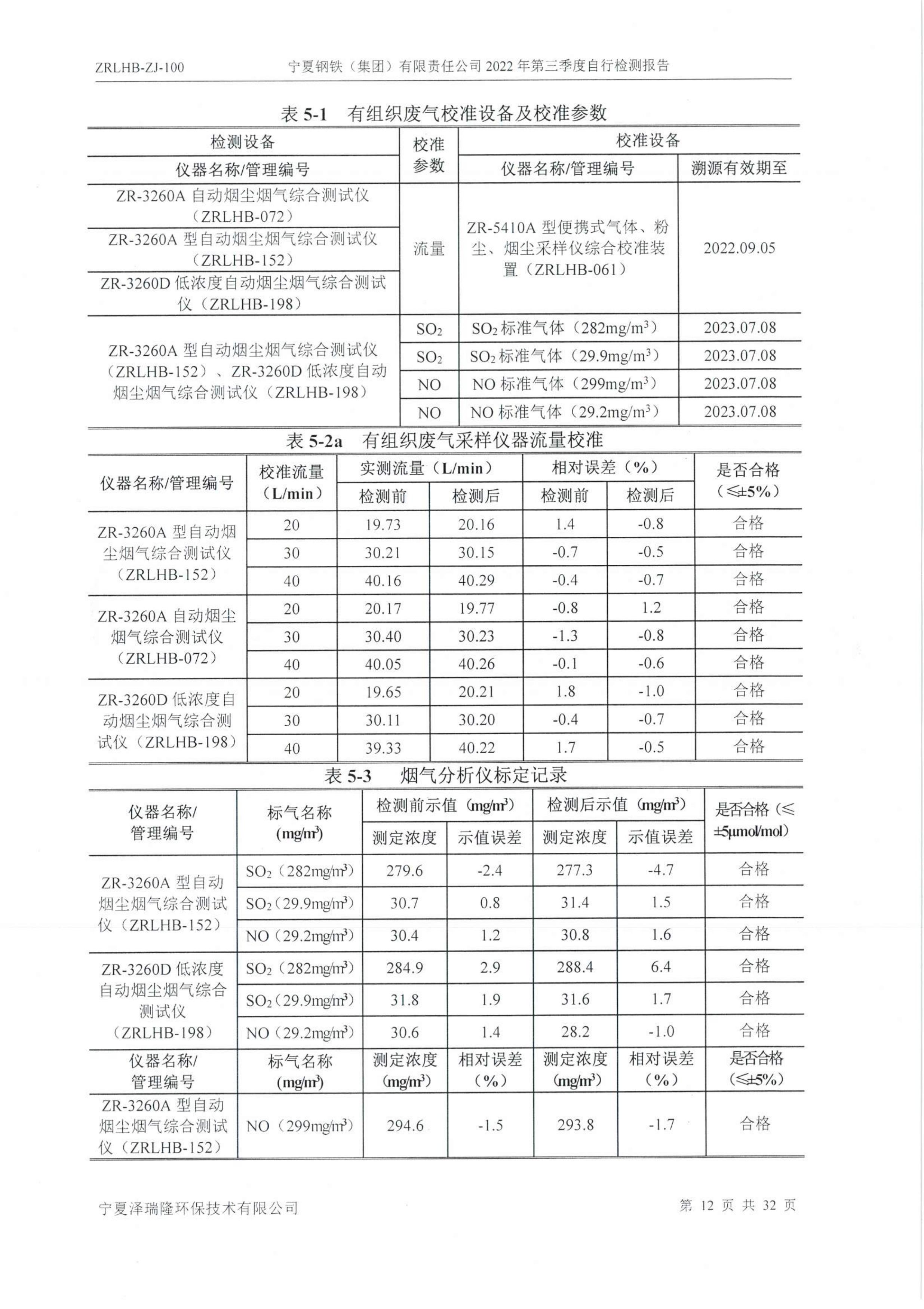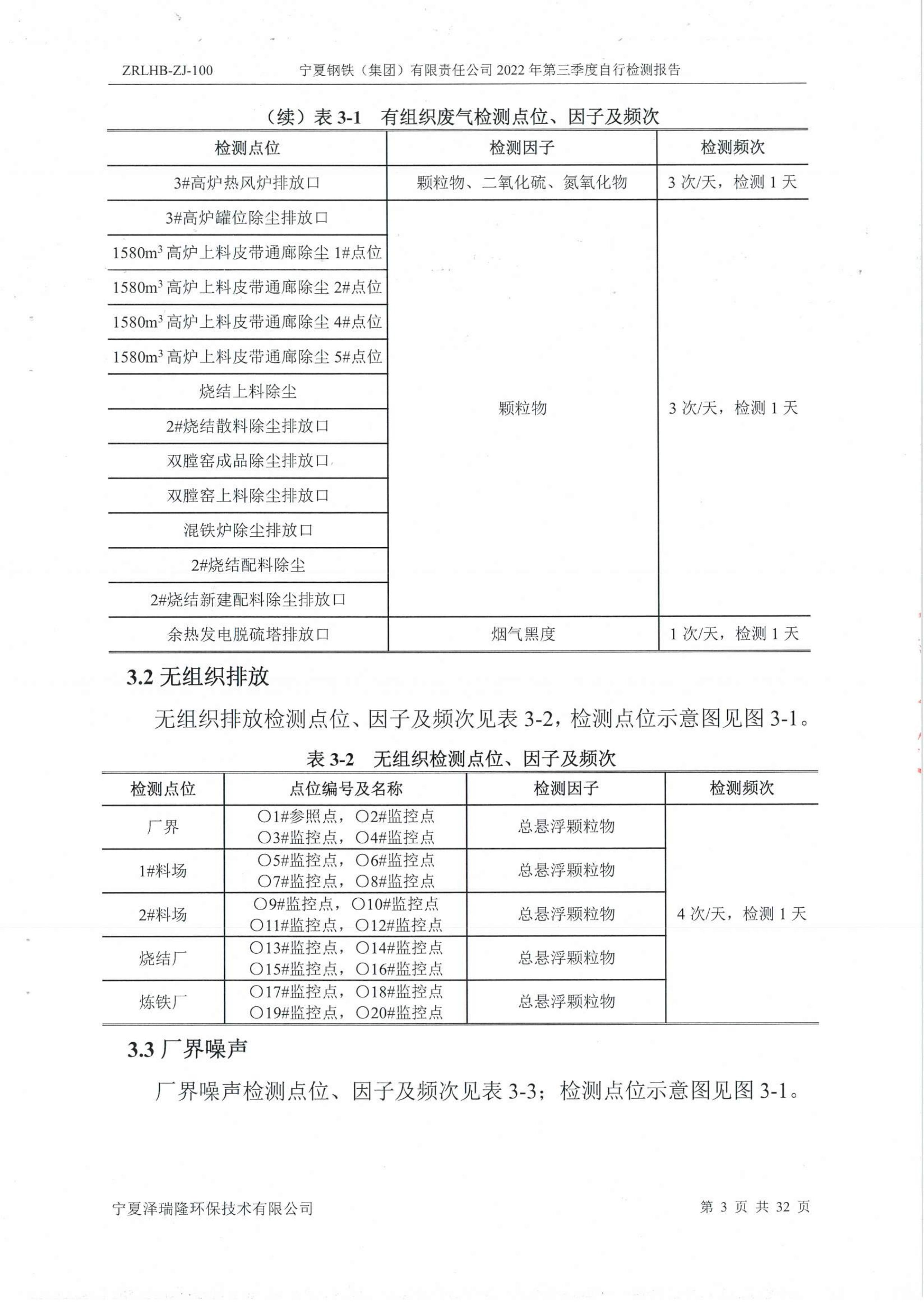 2022年第三季度自行監(jiān)測報告